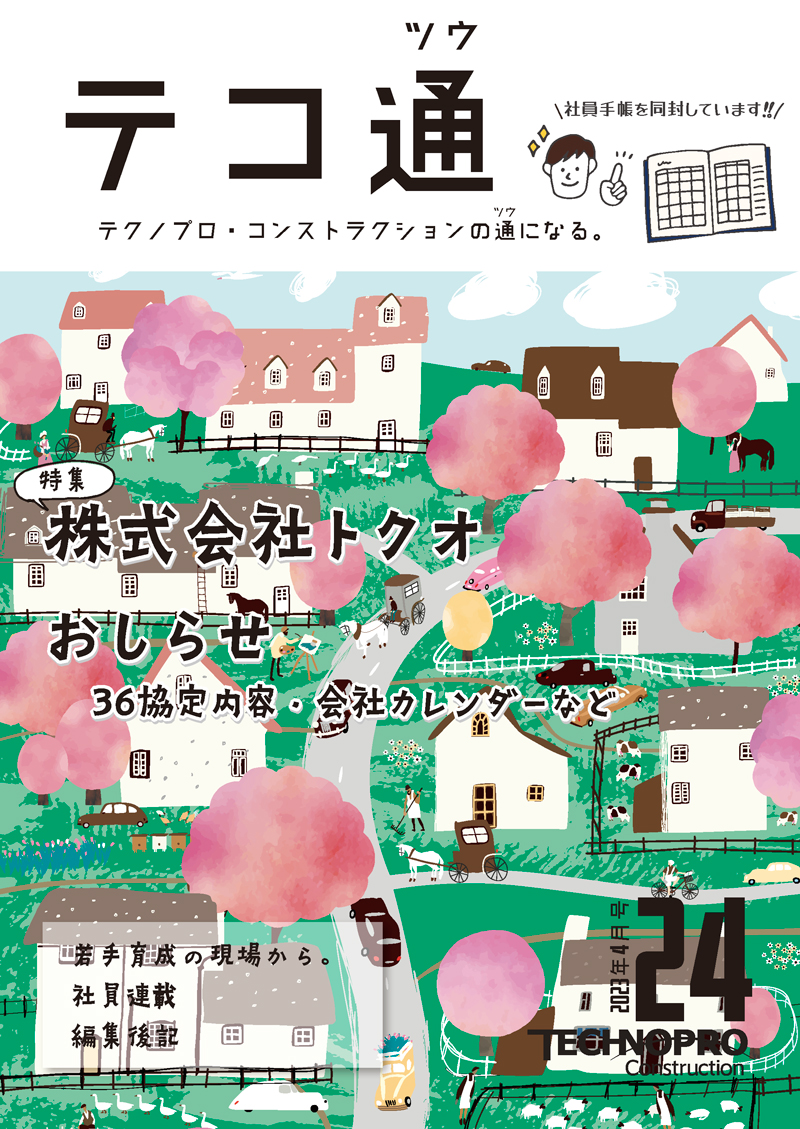 『テコ通』は株式会社テクノプロ・コンストラクションの社内報、3か月に一度の季刊サイクルで発行しています。