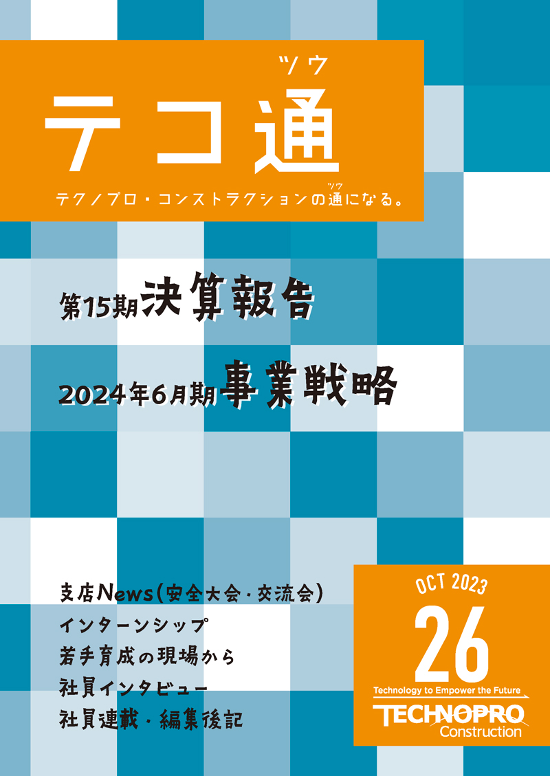 『テコ通』は株式会社テクノプロ・コンストラクションの社内報、3か月に一度の季刊サイクルで発行しています。